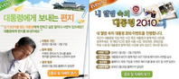 청와대는 2010년 신년 이벤트로 '대통령에게 보내는 편지'와 '내 앨범 속의 대통령 2010'을 개최한다고 4일 밝혔다.'대통령에게 보내는 편지'는 네티즌들이 임기 3년차를 맞는 이명박 대통령에게 당부하고 싶은 내용이나 전하고 싶은 각자의 사연을 접수받는 이벤트.