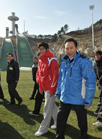 이명박 대통령은 20일 2018 평창 동계올림픽 준비 현장을 찾아 유치위원회와 선수단을 격려했다. 지난 2007년 대선 후보시절 2014 평창동계올림픽 유치위원회의 파란색 점퍼를 다시 꺼내 입은 이 대통령은 "실패를 잊지 말라고 입었다"고 비장함을 보였다.스키점프 경기