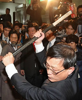 지난 12월 해머로 국회 회의실 문을 부수는 문학진 의원. ⓒ 뉴데일리 지난해 12월 국회에서 발생한 폭력사태로 기소된 민주당 문학진 의원과 민주노동당 이정희 의원에게 각각 벌금 300만원, 100만원이 구형됐다. 서울남부지검 형사6부(배성범 부장검사)는 지난 4일 남