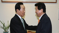 김영삼 전 대통령이 4일 상도동 자택에서 한나라당 안상수 원내대표의 예방을 받고 있다. ⓒ 연합뉴스 김영삼 전 대통령은 4일 상도동 자택에서 한나라당 안상수 원내대표의 예방을 받고 “국가의 백년대계를 위해 세종시 문제에 단호히 대처해야 한다&rdqu