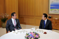 이명박 대통령은 2일 오전 청와대에서 정몽준 한나라당 대표와 조찬 회동을 갖고 정국 현안에 대해 논의했다. 이날 회동은 접견 모두만 제외하고는 모든 배석자를 물린 채 단독 회동으로 진행됐다.정 대표 취임 후 여당 지도부 단체회동을 포함한 당청회동은 지난 9월 9일과 2