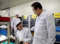 이명박 대통령이 2일 (주)세코닉스를 방문, 근로자들을 격려하고 있다. ⓒ 뉴데일리 이명박 대통령은 추석을 하루 앞둔 2일 오전 경기도 동두천시의 (주)세코닉스를 깜짝 방문, 추석연휴에도 쉬지 않고 일을 하는 근로자들을 격려했다.세코닉스는 광섬유 및 광학요소