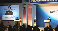 이명박 대통령은 23일 "우수한 우리 민족의 역량을 한데 엮어 시너지 효과를 낼 수 있도록 정부는 재외동포 네트워크를 활성화할 것"이라고 말했다. 이 대통령은 이날 서울 광장동 쉐라톤 워커힐호텔에서 열린 '2009 세계한인회장 대회'에 참석, "지금 세계는 국제공조를