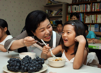 이명박 대통령 부인 김윤옥 여사는 4일 경기 고양시 일산소재 '기쁨터' 지역아동센터를 방문, 관계자들을 격려하고 봉사활동에 참여했다. 김 여사는 현장에서 직접 궁중떡볶이를 요리해 어린이들에게 선물하기도 했다.지난 1988년 장애아 어머니 10명이 모여 공부방으로 시작한