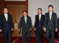 이명박 대통령은 6일 오전 청와대에서 한나라당 박희태 대표, 민주당 정세균 대표, 자유선진당 이회창 총재 등 여야 3당 대표들과 조찬회동을 갖고 북측의 장거리 로켓 도발에 따른 대응책 등을 논의했다.이 대통령은 이날 오전 7시 25분경 청와대에서 각당 대표들을 맞이,