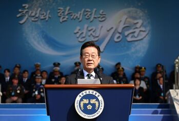 이재명 대통령이 1일 국군의 날을 맞아 지난해 비상계엄 사태에 군 일부가 연루됐던 것과 관련 "불법 계엄의 잔재를 청산하고 헌법을 수호하는 군대를 재건하겠다"고 밝혔다. 아울러 한미동맹을 기반으로 전시작전통제권을 회복해 자주국방의 길로 가야 한다고 했다.이 대통령은 1
