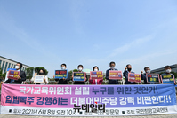 '한반도인권과통일을위한변호사모임'과(한변)'과 올바른북한인권법을위한시민모임(올인모)'이 8일 오전 서울 영등포구 국회 정문 앞에서 기자회견을 열고 북한인권재단 출범을 거듭 촉구했다. 기자회견에서 이들은 북한인권재단 이사를 추천·임명하지 않은 더불어민주당 전 원