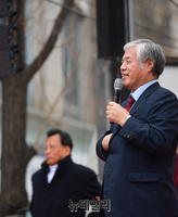 "종교탄압 중단하라." "전광훈·이은재 구속 반대한다."2일 오전 9시30분쯤 서울중앙지법 입구 법원삼거리 앞. 50여 명의 시민이 쌀쌀한 날씨에도 전광훈 한국기독교총연합회(한기총) 목사의 구속 반대를 외쳤다. 주위에는 경찰 10여 명이 배치돼 만일의 사태에 대비했다.