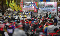 “똘똘 뭉쳐 총파업에 승리하자. 문재인 정부 규탄한다.”3일 오전 10시 서울시 종로구 서울시교육청 앞. 임금인상과 비정규직 폐지 등을 요구하는 구호가 주변을 울렸다. 전국민주노동조합총연맹(민노총) 산하 전국학교비정규직노동조합(학비노조) 소속 조합원 2500여명(경찰