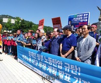 전국민주노동조합총연맹(민노총)이 김명환 민노총 위원장의 구속에 반발하며 대정부 강경투쟁을 선언했다.민노총은 24일 오전 10시 청와대 앞에서 ‘문재인 정부 노동탄압 규탄!’ 기자회견을 열고 “이제까지 투쟁은 문재인 정부의 잘못된 노동정책을 바꾸기 위한 정책이었다”며 “