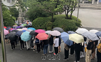 현충일인 6일 오후 3시 10분께 서울 성신여자대학교 돈암캠퍼스 정문 앞. 우비를 입거나 우산을 든 학생들이 보였다. 한 줄에 6명씩 차례로 선 줄은 성신여대 정문부터 체육관까지 이어졌다. 50m가 넘었다. 총학생회 측에 집회 참여를 신청한 학생만 600명. 이들은 ‘