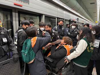 전장연, 서울 지하철 출근길 시위 … 4·5호선 1시간 무정차 통과