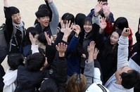 “합격 기원” “수능 대박” “선배님 힘내세요”고등학생들이 대학수학능력시험(수능)을 치르는 선배들을 응원하기 위해 구름처럼 모였다. 배문고, 성동고, 장충고 등 학교별 응원단(70여명)이 새벽부터 나와 북과 장구를 두들기고 손팻말을 흔들었다. “시험 잘 보세요” 우렁찬