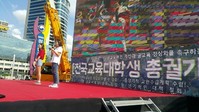 #. 11일 서울역 앞에서 열린 ‘교육여건 개선과 공교육 정상화를 촉구하는 전국교육대학생 총궐기’ 현장을 찾았다. 서울에 폭염주의보가 발령될 정도로 무더운 날씨였지만 전국의 교대생은 아랑곳하지 않고 이곳에 집결했다. 5,000명이 한 목소리, 한 구호를 외쳤다. “1수