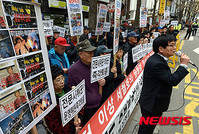 어버이연합 등 시민단체들이 17일 서울 중구 정동 프린치스코 교육회관 앞에서 기자회견을 열어, 세월호를 정치적으로 악용하지 말라고 목소리를 높였다. 기자회견에 참석한 어버이연합, 자유민학부모연합, 한겨레 청년단 회원 100여명은 '정치적 악용,유가족 선 동 즉각 중단하