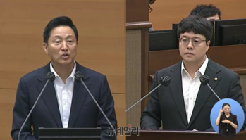 서울시의 TBS 지원 중단과 관련해 오세훈 시장과 박유진 더불어민주당 의원이 11일 열린 시정질의에서 정면으로 충돌했다.특히 오 시장이 "편향된 진행자가 나가며 ‘나 다시 돌아올 거야’라고 한 것이 (지원 폐지의) 불을 지폈다"며 TBS 사태의 책임을 김어준 전 진행자