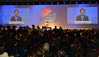 12일 오후 2시 대구 엑스코에서 열린 제7차 대구경북 세계물포럼 개막식에서 권영진 대구시장과 김관용 경북도지사는 “지난 4년 동안 힘차게 준비해왔다”며 “물 위기를 극복하는 열띤 토론의 장이 열리기를 기대한다”고 강조했다.권 시장은 이날 개막식 인사말에서 “대구는 젓
