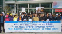 4대강범대위와 댐반대국민행동, 환경운동연합, 대구환경운동연합 등 한국NGO 단체들이 제7차세계물포럼 반대집회를 열었다.이들은 13일 오전 11시 물포럼이 열리는 대구엑스코 정문에서 기자회견을 갖고 ‘물의 산업화 반대와 4대강 사업 책임자 처벌’등을 촉구하는 성명을 내고