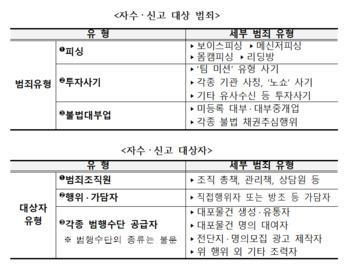 경찰청 국가수사본부(국수본)는 5월1일부터 6월30일까지 2개월 간 피싱·투자사기·불법 대부업 범죄에 대한 특별자수·신고 기간을 운영한다고 29일 밝혔다. 특별자수·신고 기간에는 해외 콜센터와 자금세탁 등 범죄조직원부터 수거책·송금책·인출책 및 각종 대포 물건
