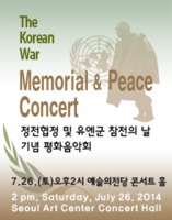 7월26일 토요일 오후2시 서울 예술의 전당 콘서트홀에서 '정전협정 및 유엔군 참전의 날 기념 평화 음악회'가 열린다. 6·25 참전용사들을 기리기 위해 마련된 이 음악회는 2009년 10월, 서울 용산 전쟁기념관 평화의광장에서 개최된 이래 올해로 6번째를 맞이했다.