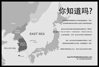 서경덕 성신여대 교수가 시진핑 국가주석 방한일정에 맞춰 중국 공산주의청년당(공청단) 산하 매체인 '중국청년보'(中國靑年報)에 최초로 '동해'(East Sea) 광고를 게재했다. 광고는 시진핑 중국 주석의 방한 마지막 날인 4일 신문에 실렸으며 신문 반면 사이즈의 흑백광