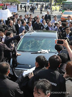 19일 오전 '출근 저지' 과정서 승용차 유리창 파손 되기도
