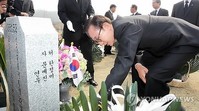 MB, 천안함 46용사 묘비 만지며 눈시울 붉혀