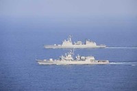 소말리아 해적 잡는 청해부대 14진과 우크라이나 해군 호송전단이 지난 2월 1일 사상 처음으로 對해적 연합훈련을 실시했다고 합참이 전했다. 이날 훈련은 우리나라와 우크라이나 해군 함정들의 전술기동훈련과 양국 특수전 요원들의 선박등반, 내부 장악 등 검문검색 훈련이었다.