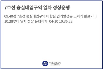 숭실대입구역 화재 소동 … 7호선 한때 무정차, 현재 정상 운행
