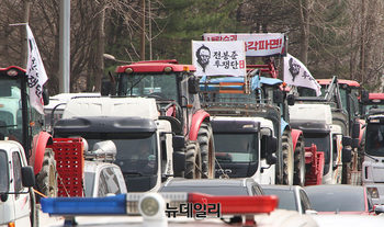 "남태령을 지켜라" 트랙터 앞에 선 사람들 … 전농 시위에 맞불