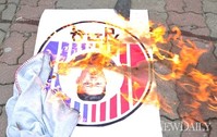 백요셉 등 탈북기독청년 10여명이 8일 오후 서울 영등포구에 위치한 사무실 앞에서 [종북 전교조 규탄 집회]를 가졌다.이날 집회는 종북 전교조를 큐탄하는 성명서를 발표하고 김정은 사진을 불태우는 화형식 퍼포먼스가 있었다.…