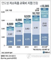 4인 가족 기준 소득인정액이 월 평균 202만원 이하인 가정은 '초중고 교육비 지원' 신청을 할 수 있다.교과부는 신청자 가구원의 소득이 시도교육청 별 기준에 해당하면 고등학생 입학금과 수업료, 급식비, 방과후학교 자유수강권과 인터넷 요금 등을 1년간 지원한다고 12