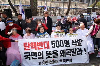 '단체 삭발' 나선 시민 500명 "헌법재판관들, 탄핵 각하하라"