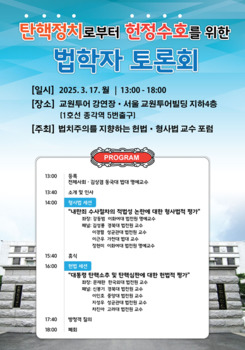 17일 법학자들이 모여 탄핵정치의 문제점과 헌정질서 수호 방안을 논의하는 학술 토론회가 열린다.이번 토론회는 최근 더불어민주당 등 야당 주도로 진행되고 있는 탄핵 문제를 법리적으로 분석하고, 윤 대통령에 대한 '불법 수사' 논란이 지속되는 가운데 내란죄 수사 절차의 적