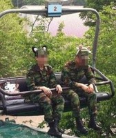 군인들의 데이트(?) 사진이 온라인상에서 화제다.최근 한 온라인 게시판에 ‘훈훈한 놀이동산 커플’이라는 제목으로 사진 한 장이 올라왔다.사진에는 군복을 입은 군인 한 쌍이 놀이동산 리프트에 탑승 중이다.인상적인 것은 두 명 모두 동물 귀 머리띠를 한 채 탑승하고 있다는
