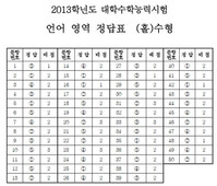 [포토] 2013학년도 수능 외국어영역 '홀수형' 정답