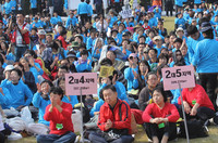 한국에 와서 근로자로 일하는 중국동포들이 가을 하늘 아래 잔디밭으로 소풍 나와 모처럼 활짝 웃었다. 2,500명의 중국동포들이 21일 경기도 고양시 덕양구 성사동 하나은행 원당축구장에서 열린 ‘한중사랑 가을소풍’을 즐겼다. 이날 참석한 중국 동포들은 수도권은 물론이고