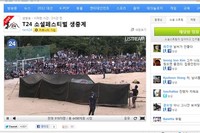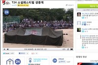 'T24페스티벌'의 본 게임인 24인용 군용텐트 치기가 현재 진행 중이다. 텐트를 치기 시작한 지 30여 분 가량 됐지만 생각만큼 쉬운 일은 아닌 듯 지주대를 세우면 쓰러지고, 다시 세우길 반복하고 있다.이보다 눈길을 끄는 건 생중계 사이트의 동시접속자. 현재 유스트림