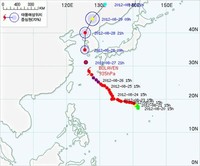 제15호 태풍 '볼라벤'. 일본 오키나와를 지난 26일 오후 현재 중심기압 920헥토파스칼(hPa) 최대풍속 초속 53m의 초대형 태풍으로 발전했다.기상청에 따르면 '볼라벤'은 그 위력은 그대로 유지한 채 27일 오전 제주도에 상륙한다. 28일 오후 서울 서쪽 해상에