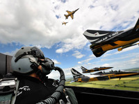 "하늘 속에 내가 있다!"영국 와딩턴 에어쇼, 판보로 에어쇼에 데뷔한 공군 특수비행팀 블랙 이글스 조종사들이 외쳤을 법한 말이다.공군이 블랙이글스 팀과 함께 하늘에서 찍은 사진을 보내왔다. "셀카가 이 정도는 돼야지~!"공군 블랙이글스의 T-50 편대가 이륙 중이다.