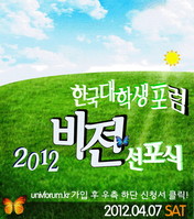 한국대학생포럼(한대포)의 ’2012 비전 선포식’이 다음달 7일 19시 건국대학교 새천년관에서 열린다. 이날 행사는 3기 회장을 비롯한 운영진과 각 지역포럼 대표들이 공식적으로 출범하기 위해 마련됐다. 개회식을 시작으로 축사, 한대포 소개, 비전 소개 및 선포, 멘토