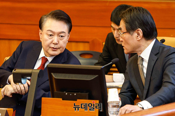 25일 오후 2시부터 헌법재판소 대심판정에서 진행된 탄핵심판 11차 변론에서 윤 대통령은 "서서히 끓는 솥 안의 개구리처럼 눈앞의 현실을 깨닫지 못한 채 벼랑 끝으로 가고 있는 이 나라의 현실이 보였다"며 이같이 밝혔다.