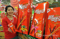보통 시중에서 판매되는 것보다 10배 이상은 크게 포장된 빼빼로 상자가 수북이 쌓인 위로 큼지막한 글씨가 눈에 띄었다.3일 오전 서울 구의동의 한 SSM(기업형 슈퍼마켓) 매장에는 계산대 앞 눈에 가장 잘 띄는 장소에 빼빼로 등 막대 형태의 과자만 골라놓은 진열대가 설