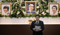 산악인 박영석, 강기석, 신동민 영결식 = 히말라야 안나푸르나에서 실종된 안나푸르나 남벽 원정대 박영석 대장과 강기석, 신동민 대원의 합동영결식이 3일 오전 종로구 혜화동 서울대병원 장례식장에서 산악인장으로 진행됐다. 유가족이 참석자들에게 인사말을 하고 있다…