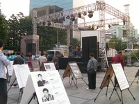 북한 주민들의 어려운 처지를 알리는 ‘사진 전시회’가 ‘반값등록금’ 쟁취를 외치는 대학생들에 의해 산산조각 났다.19일 오후 7시 청계광장. 청계천 진입로를 사이에 두고 북한 주민들의 인권실태를 전파하기 위한 사진전과 ‘반값등록금’을 주제로 한 고려대, 연세대 학생들의