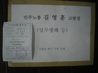 20일 서울시청 앞 서울광장에서 북한인권법 제정을 촉구하는 문화제에 참여했던 대학생들이 김영훈 민주노총위원장을 업무방해 혐의로 검찰에 고발했다. 북한인권개선을 위한 청년모임(북청모) 소속 대학생 및 청년단체들은 20일 저녁 시청앞 서울광장에서 북한의 심각한 인권침해 실