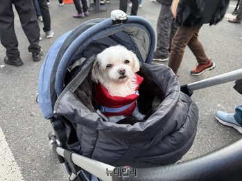 "우리 딸 애국견과 함께 탄핵 반대하러 왔어요."윤석열 대통령 체포영장 기한 만료 하루 뒤인 7일 오후 서울 용산구 한남동 대통령 관저 앞에는 여전히 "탄핵 무효"를 외치는 시민들로 인산인해를 이뤘다.반려견과 함께 집회에 참가한 60대 여성 조모 씨는 "윤 대통령 탄핵