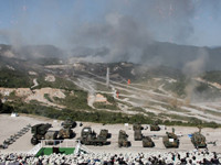 23일 경기도 포천 승진사격장에서 치러진 공지합동훈련은 오후 3시 30분 경 마무리됐다. 이번 훈련에서 우리 군은 육군과 공군, 육상과 공중 전력 간의 연계능력, 적 특수부대 침투를 막을 수 있는 능력을 보여줬다.