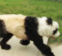 "판다를 너무 좋아해 판다처럼 보이게 염색시켰어요."중국 북경의 명물개로 떠오른 애완견 '쿵푸'(사진)가 국내 네티즌들을 경악시키고 있다. 쿵푸의 주인인 리 창시안과 양쿤은 애완견의 눈과 귀, 다리를 검게 염색하고 나머지 부분은 하얗게 탈색시켜 팬더개를 완성시켰다.