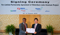 한국전력공사(KEPCO, 이하 한전)는 16일(현지시간) 캐나다 밴쿠버에서 캐나다 우라늄 탐사전문회사 피션과 합작투자 회사설립 및 탐사계약을 체결했다고 밝혔다. 한전은 지난 2008년 1윌 캐나다 피션과 기초탐사계약을 체결한 후 지난 3년간의 성공적인 워터베리 우라늄